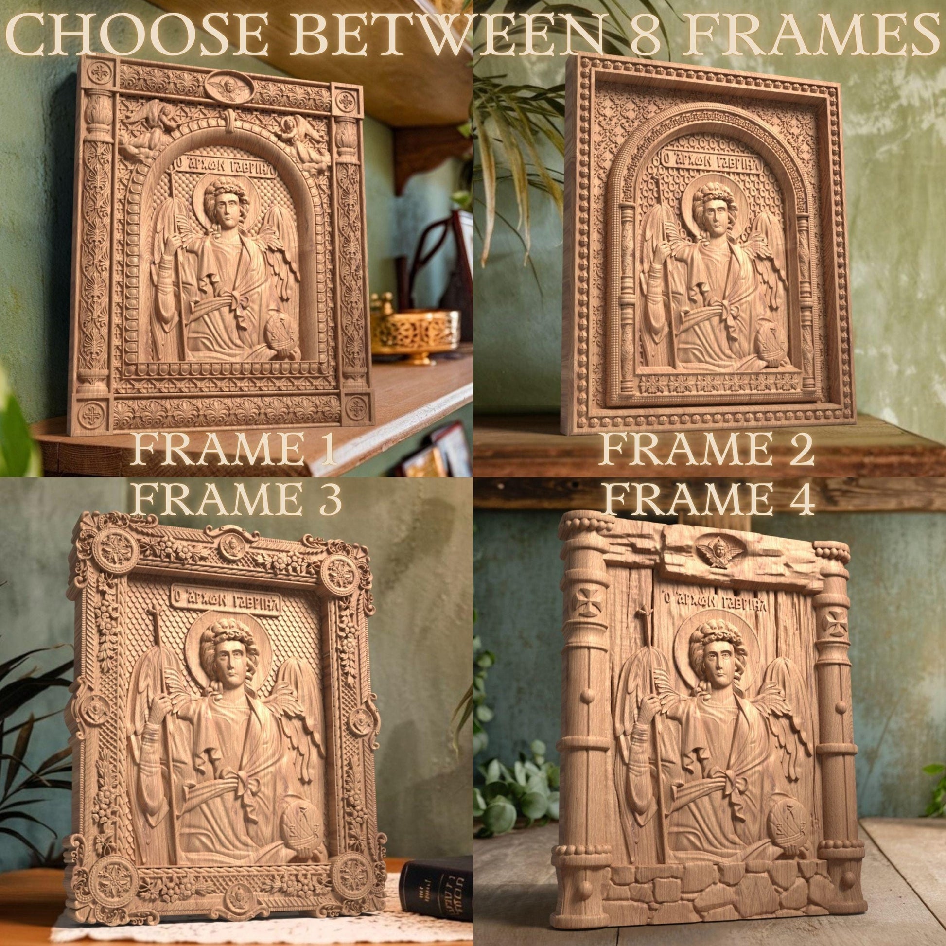 Αrchangel Gabriel Wooden Carved Handcrafted Christian Religious Icon. Byzantine Home Wall Art Decor Gift. Orthodox Greek Woodcarving Sculpture.