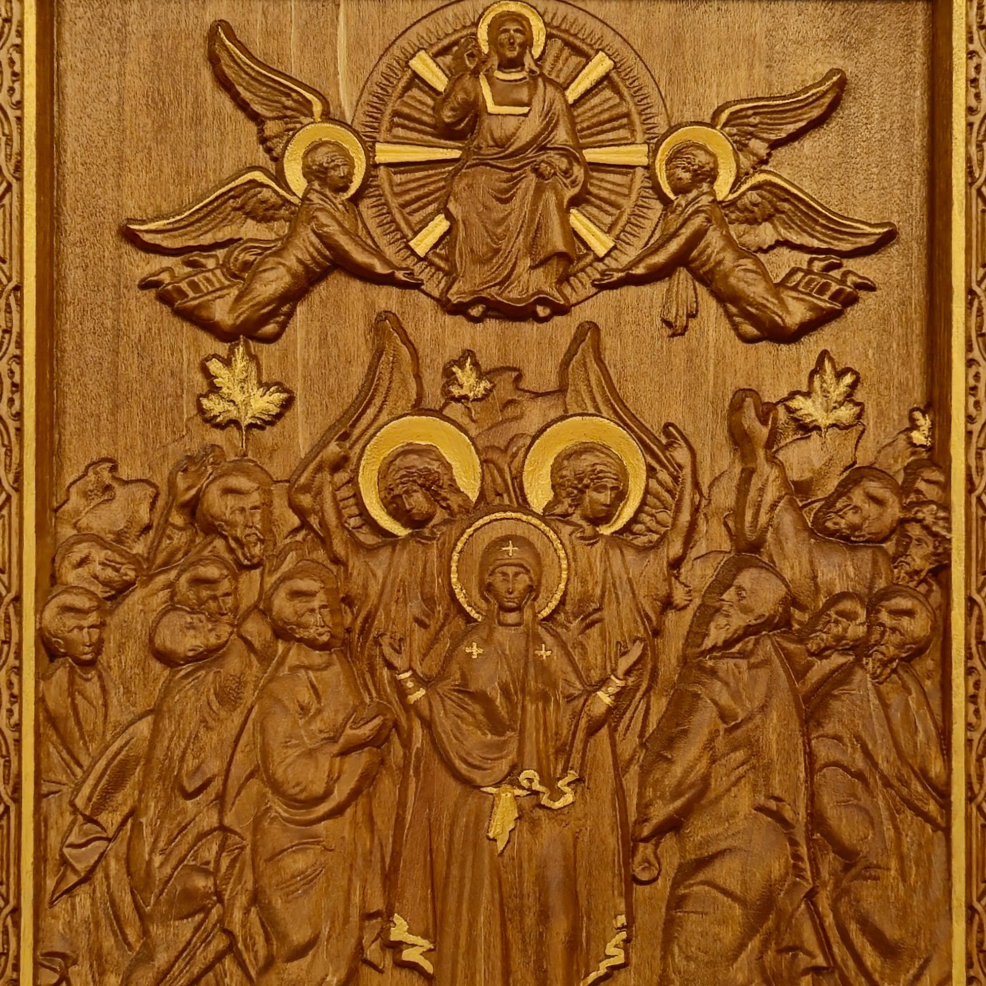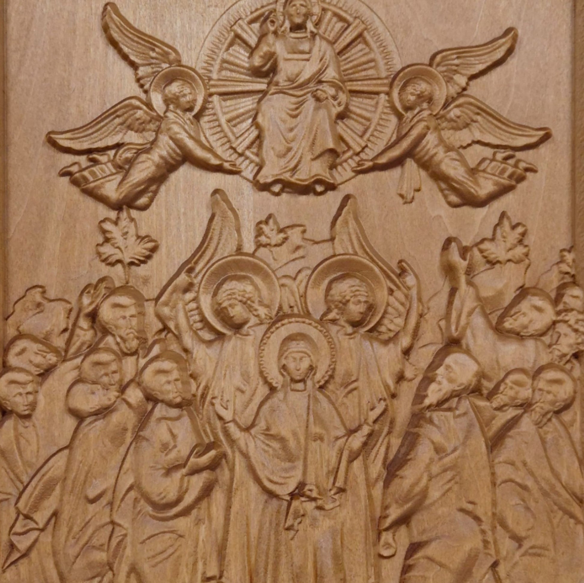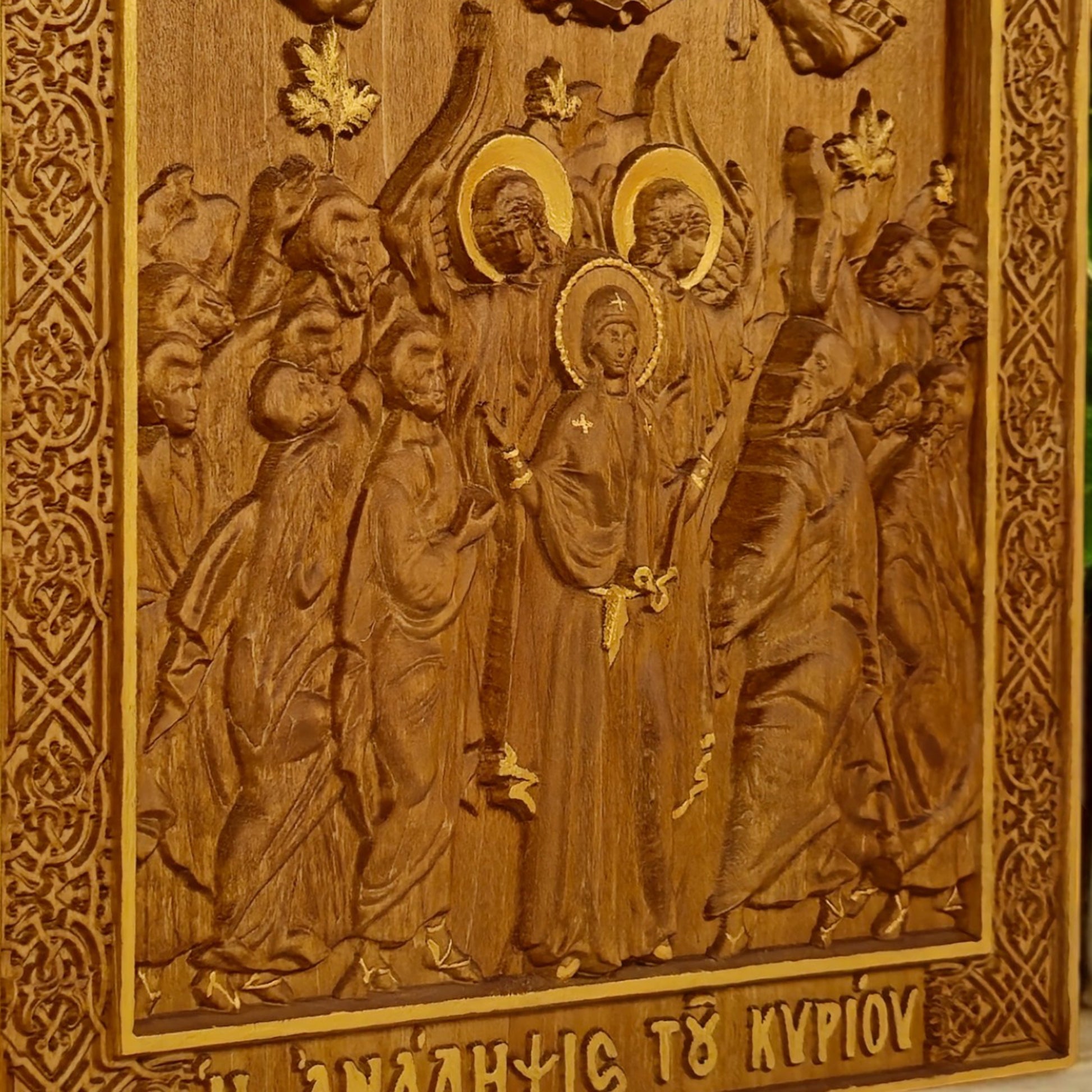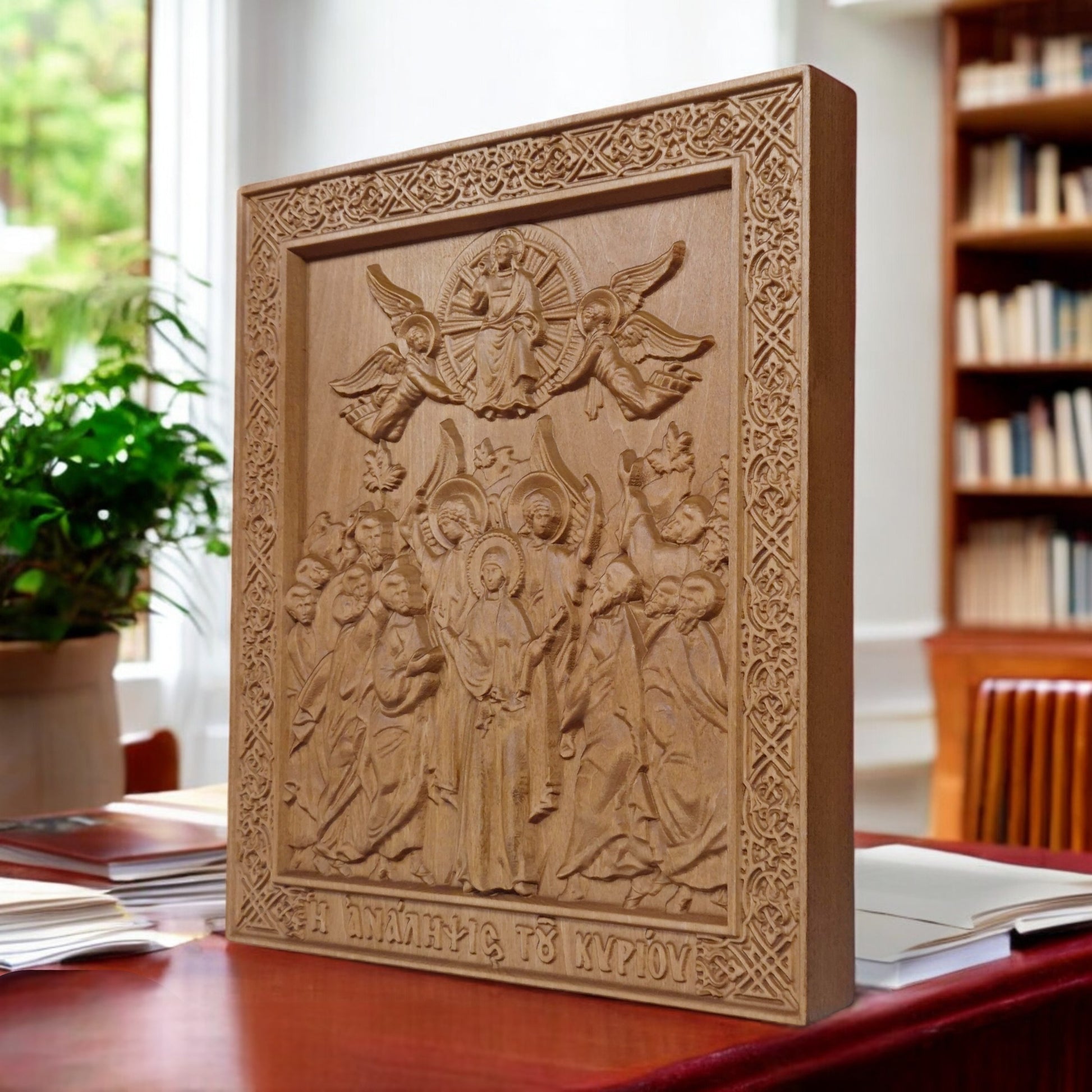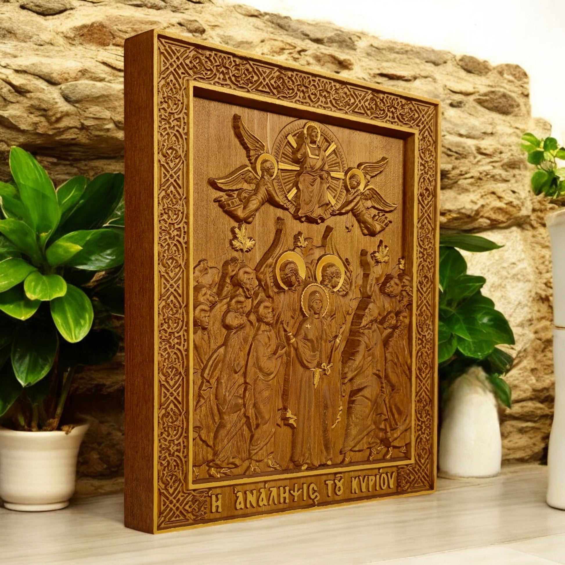 Ascension of Jesus Wooden Carved Handcrafted Christian Religious Icon. Byzantine Home Wall Art Decor Gift. Orthodox Greek Woodcarving Sculpture.