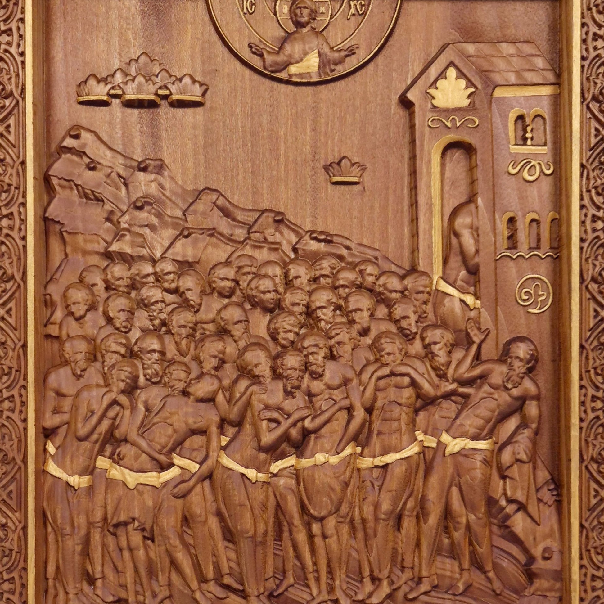 Forty Martyrs of Sebaste Wooden Carved Handcrafted Christian Religious Icon. Byzantine Home Wall Art Decor Gift. Orthodox Greek Woodcarving Sculpture.