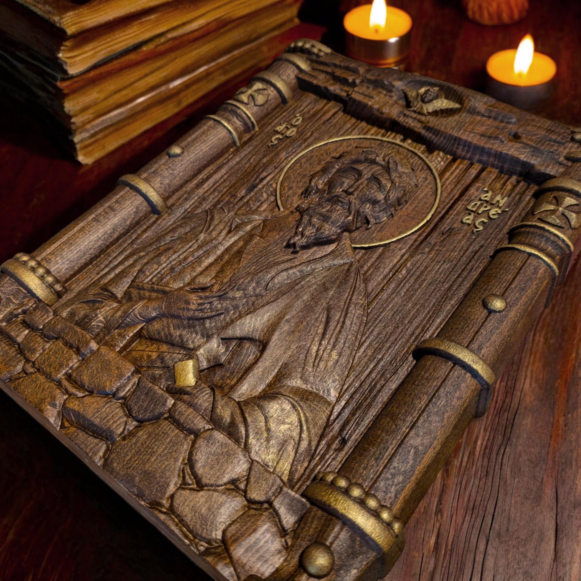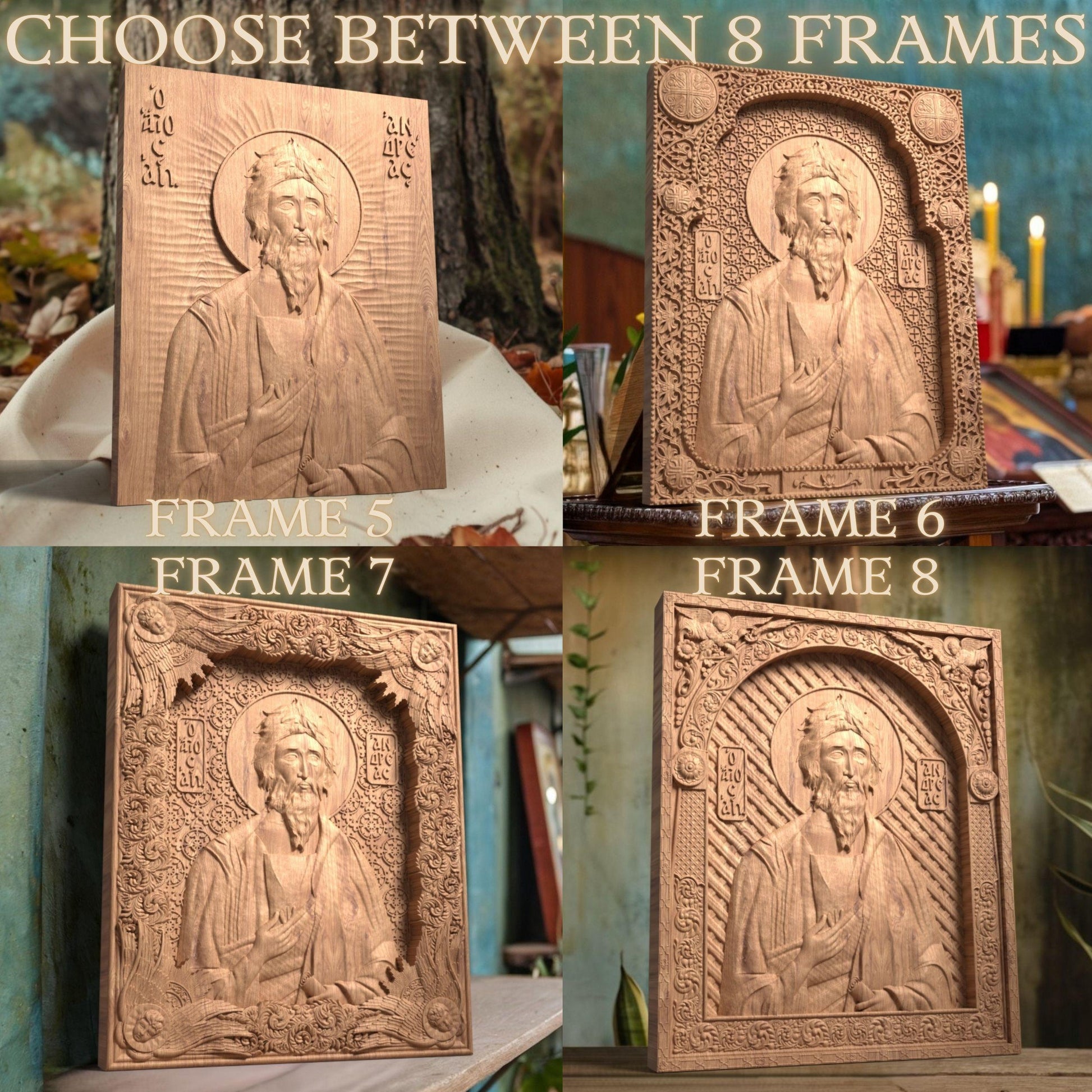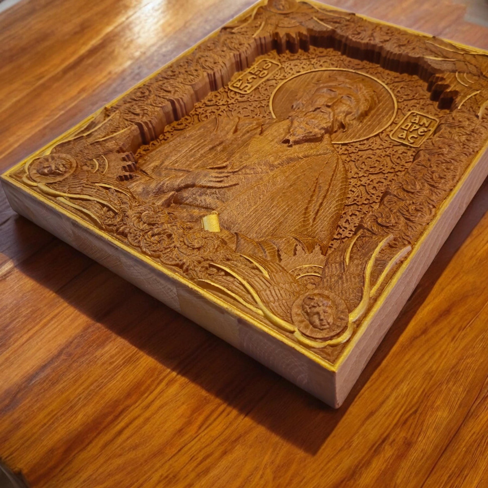 Saint Andrew the Apostle Wooden Carved Handcrafted Christian Religious Icon. Byzantine Home Wall Art Decor Gift. Orthodox Greek Woodcarving Sculpture.