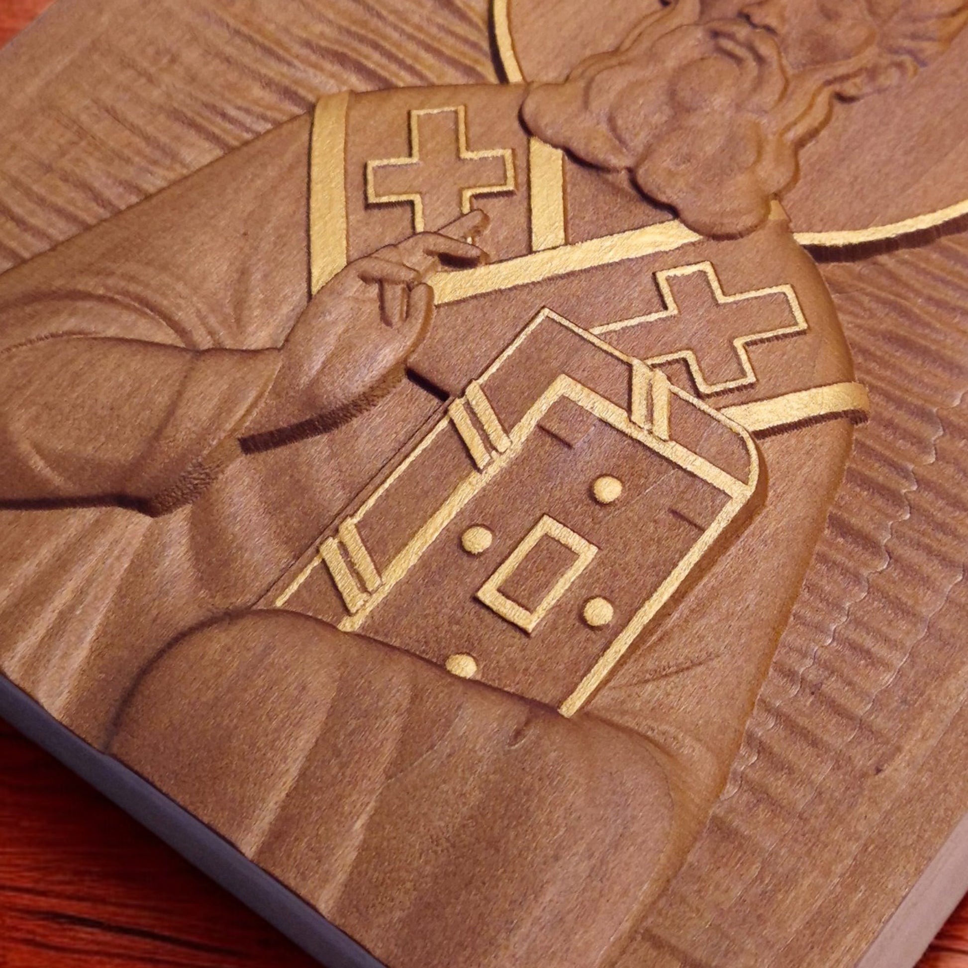Looking for a unique wall art gift idea? Check out our wooden carved Christian icon. This beautiful wall art is made from natural linden wood. It's the perfect gift for any occasion, religious or personal.