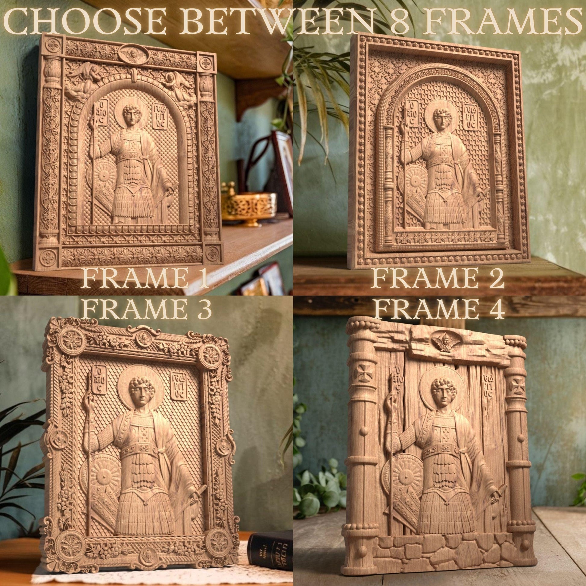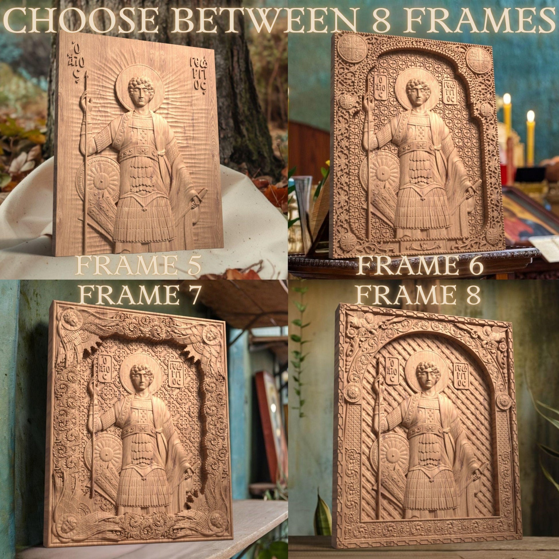 Saint George Wooden Carved Handcrafted Christian Religious Icon. Byzantine Home Wall Art Decor Gift. Orthodox Greek Woodcarving Sculpture.