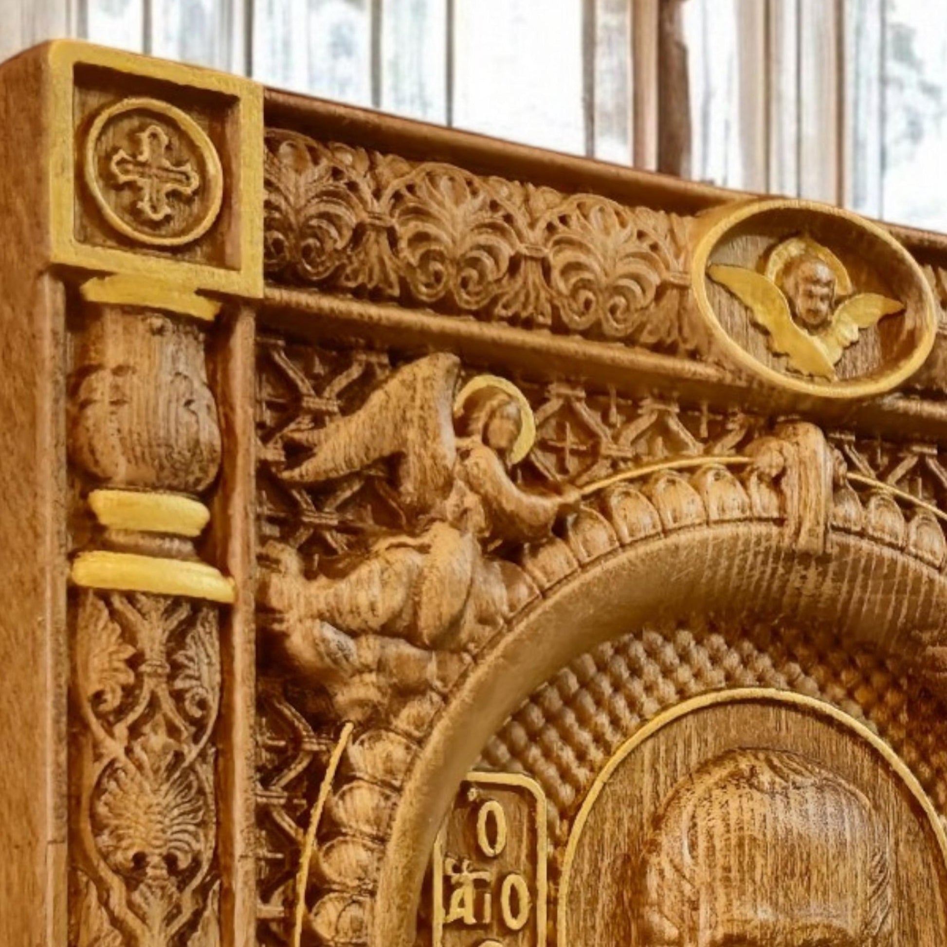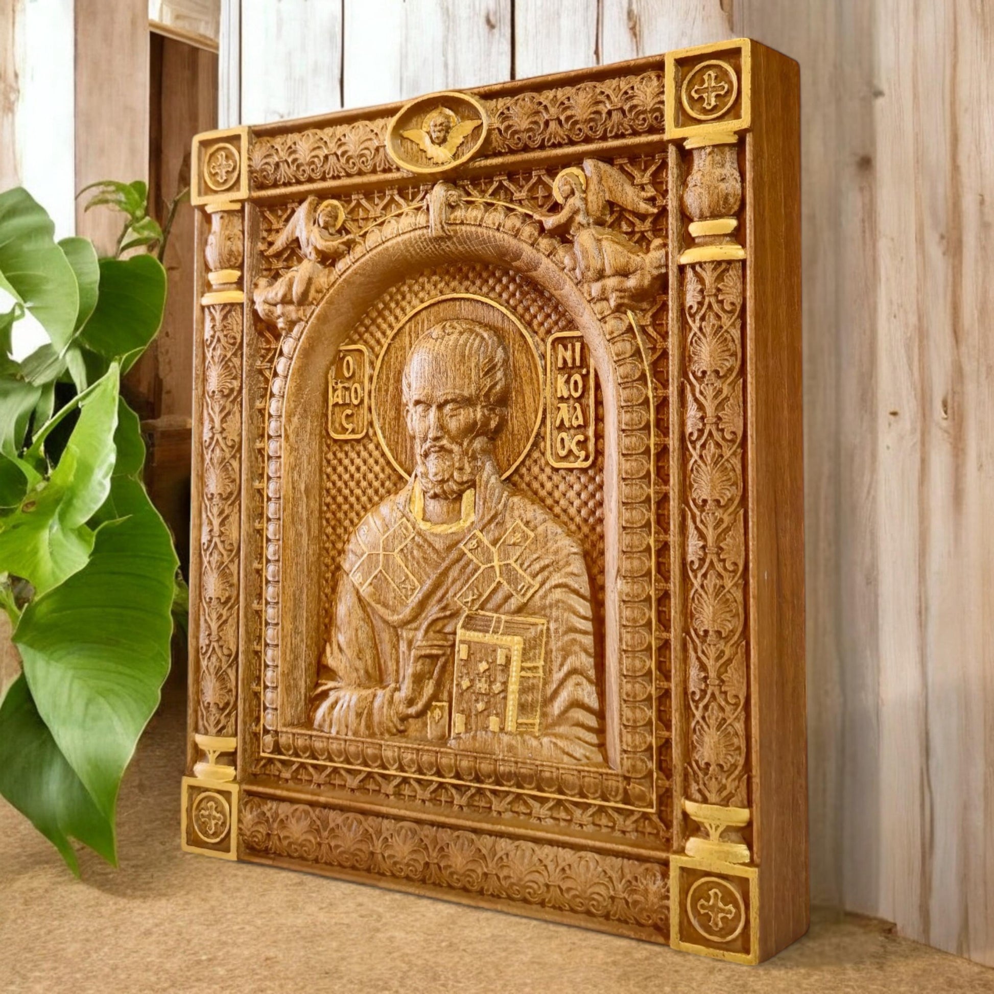 Saint Nicholas Wooden Carved Handcrafted Christian Religious Icon. Byzantine Home Wall Art Decor Gift. Orthodox Greek Woodcarving Sculpture.