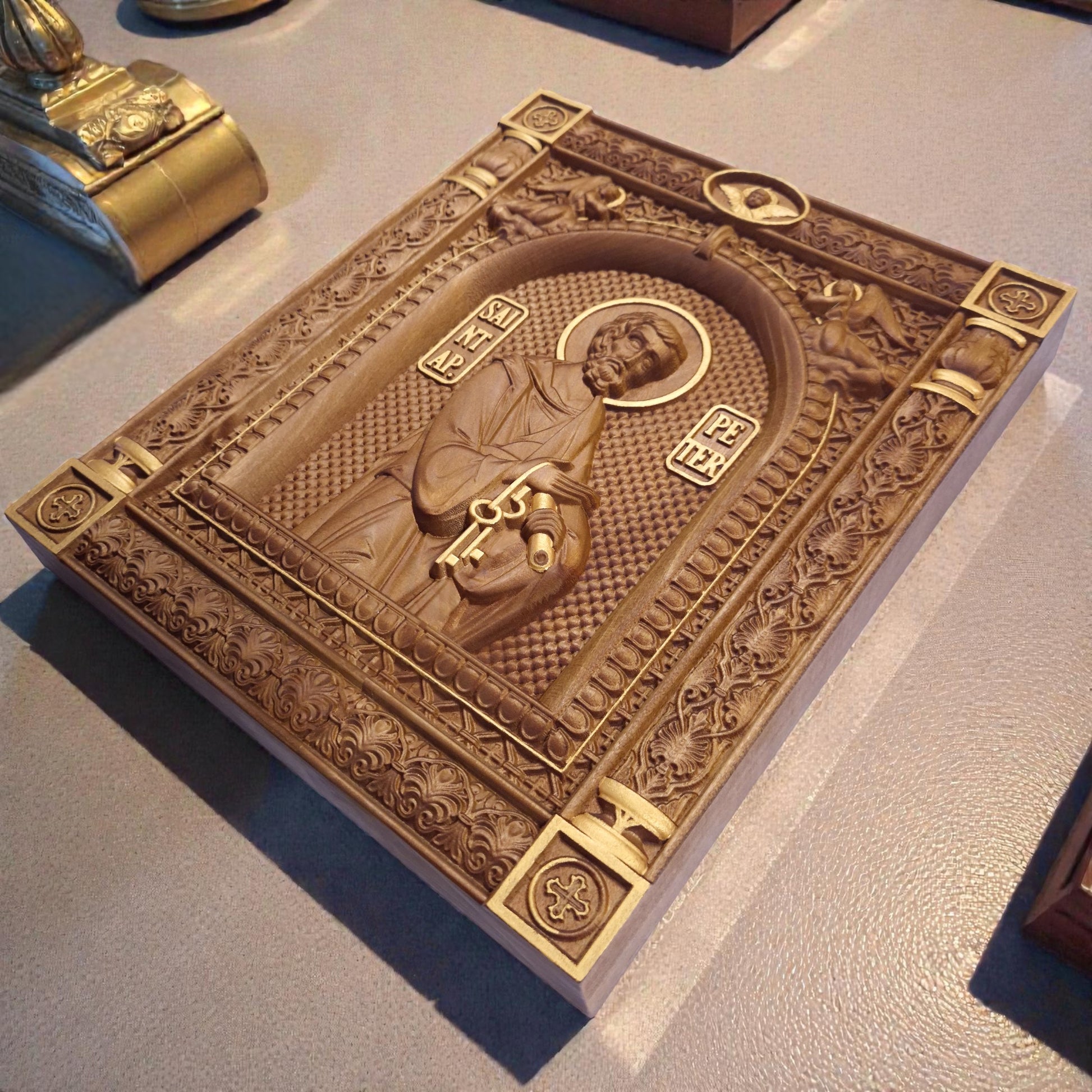 Saint Peter the Apostle Wooden Carved Handcrafted Christian Religious Icon. Byzantine Home Wall Art Decor Gift. Orthodox Greek Woodcarving Sculpture.