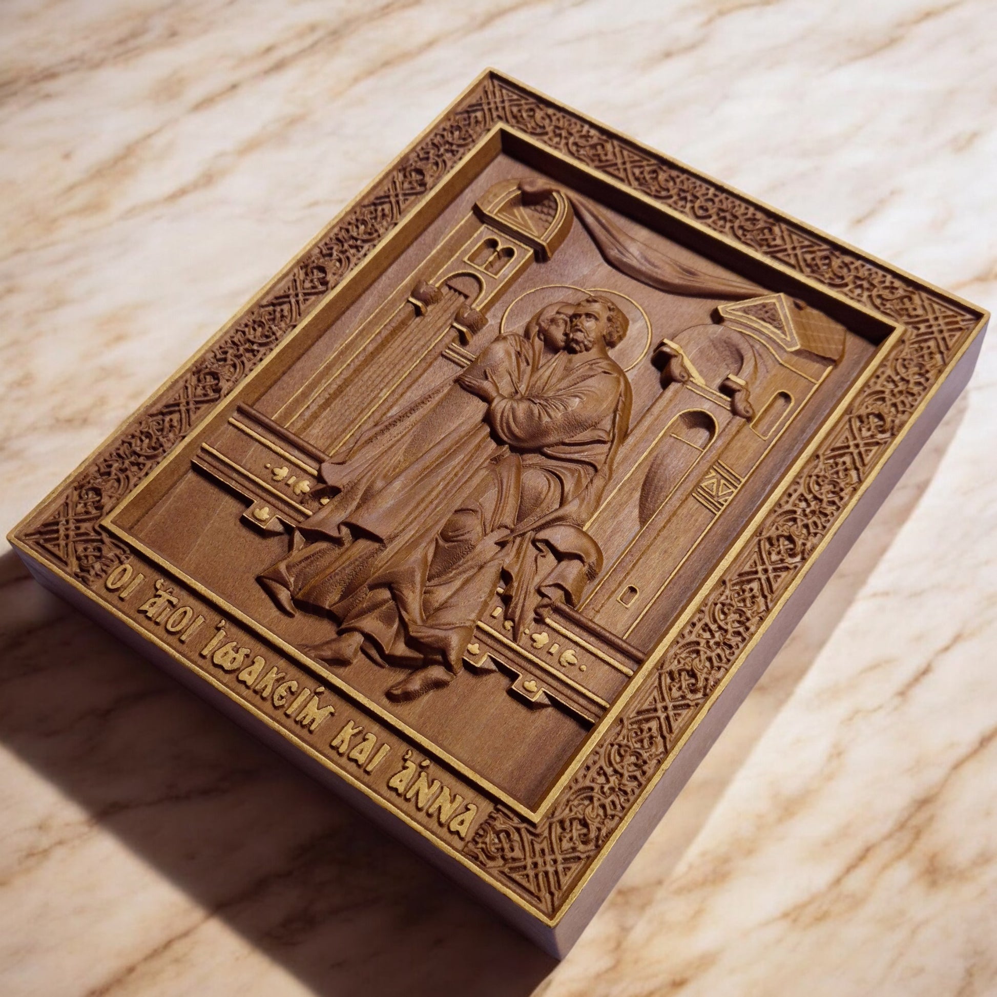 Saints Joachim and Anne Wooden Carved Handcrafted Christian Religious Icon. Byzantine Home Wall Art Decor Gift. Orthodox Greek Woodcarving Sculpture.