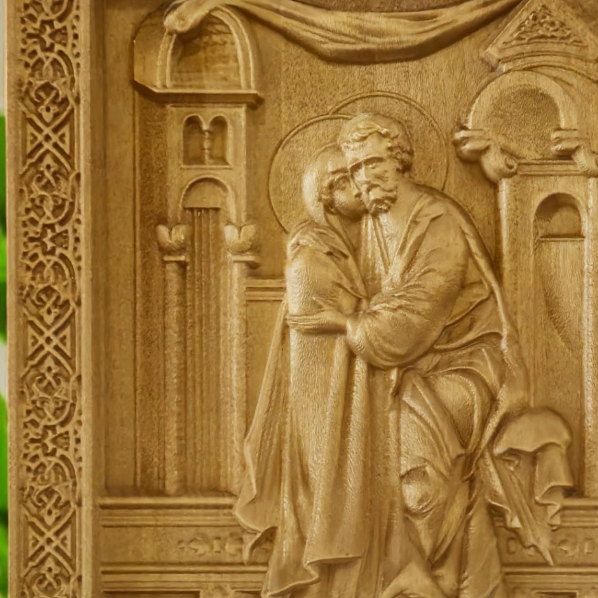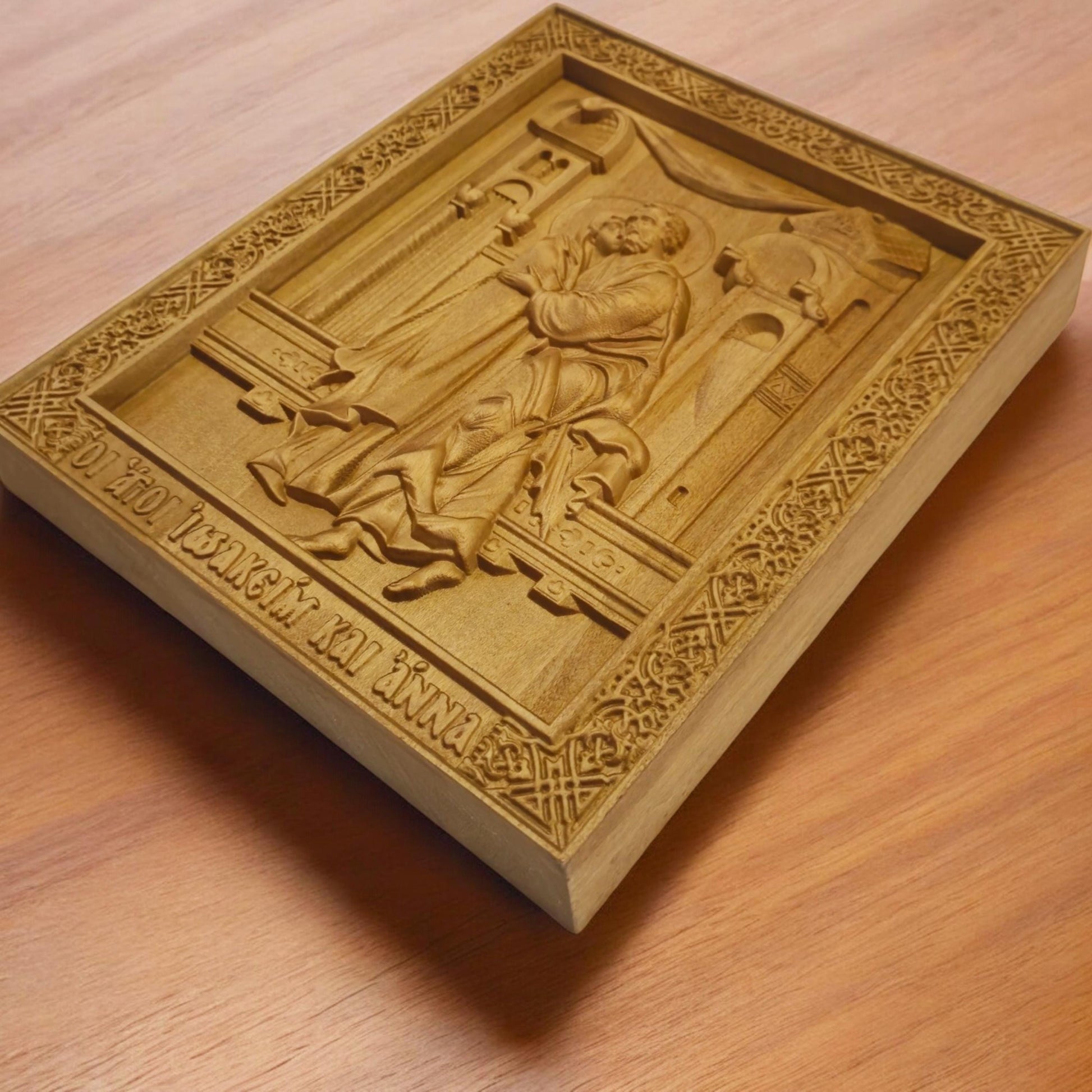 Saints Joachim and Anne Wooden Carved Handcrafted Christian Religious Icon. Byzantine Home Wall Art Decor Gift. Orthodox Greek Woodcarving Sculpture.