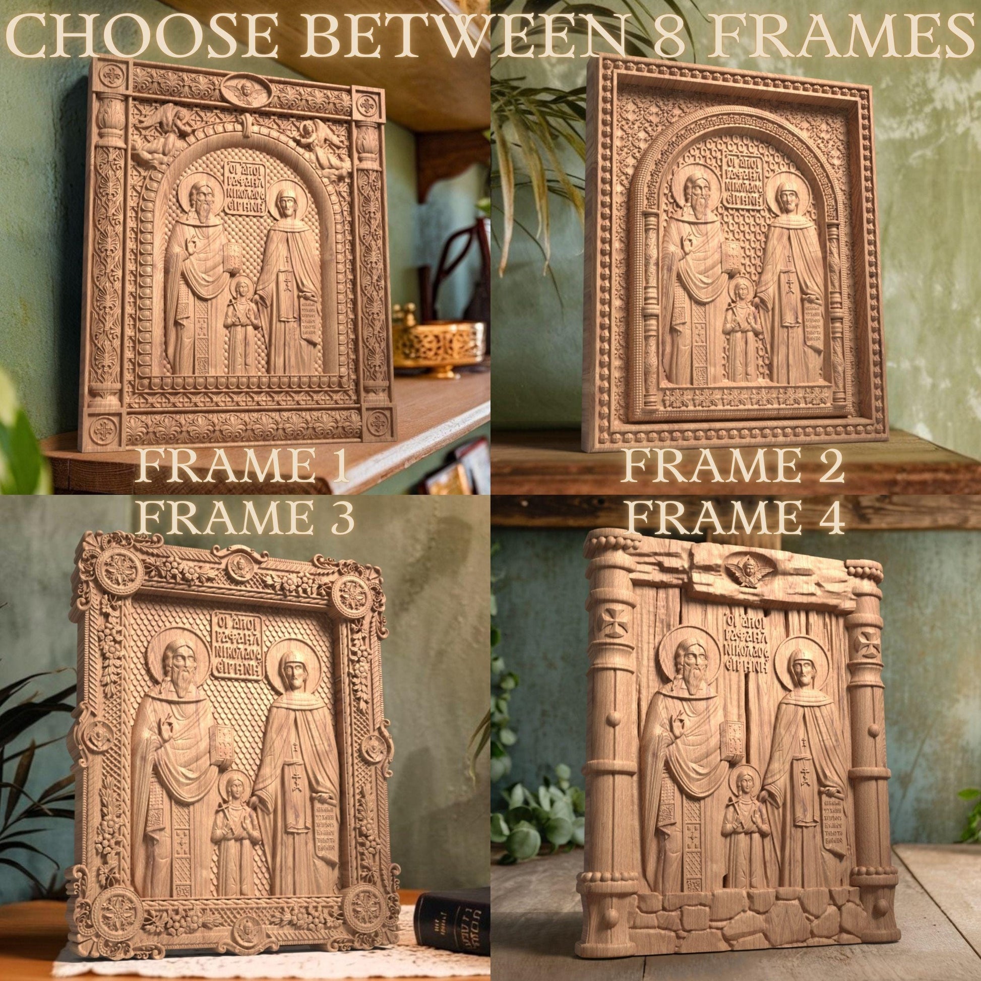 Saints Raphael Nicholas Irene Wooden Carved Handcrafted Christian Religious Icon. Byzantine Home Wall Art Decor Gift. Orthodox Greek Woodcarving Sculpture.
