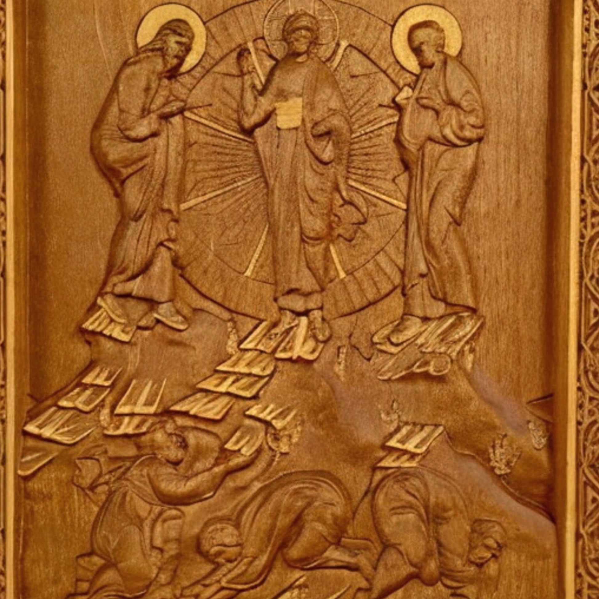 Transfiguration of Jesus Wooden Carved Handcrafted Christian Religious Icon. Byzantine Home Wall Art Decor Gift. Orthodox Greek Woodcarving Sculpture.