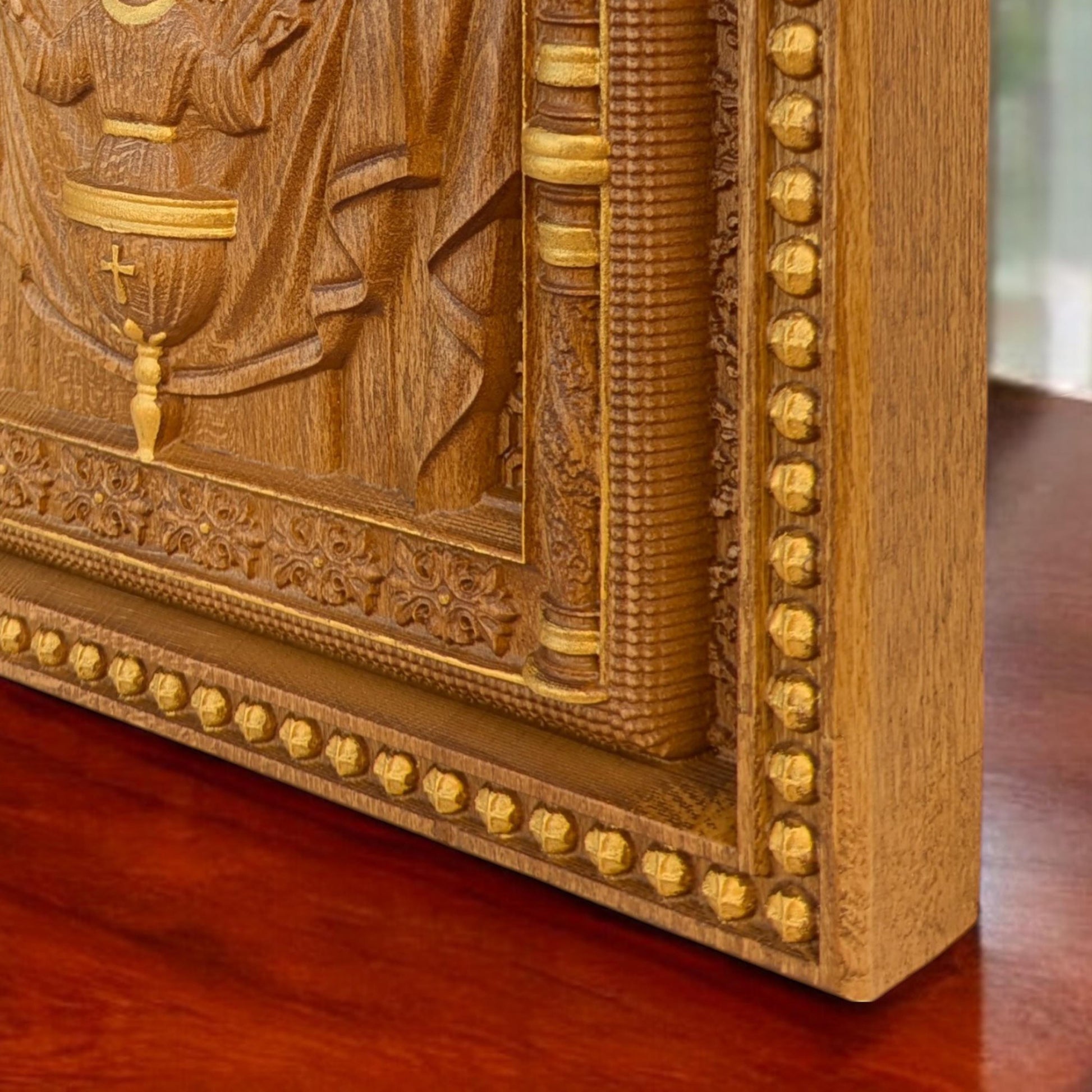 Virgin Mary Fountain of Life Wooden Carved Handcrafted Christian Religious Icon. Byzantine Home Wall Art Decor Gift. Orthodox Greek Woodcarving Sculpture.